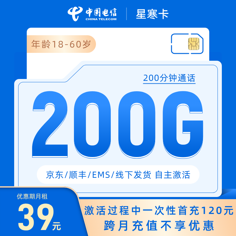 激活当月快递处一次性充值200元享优惠